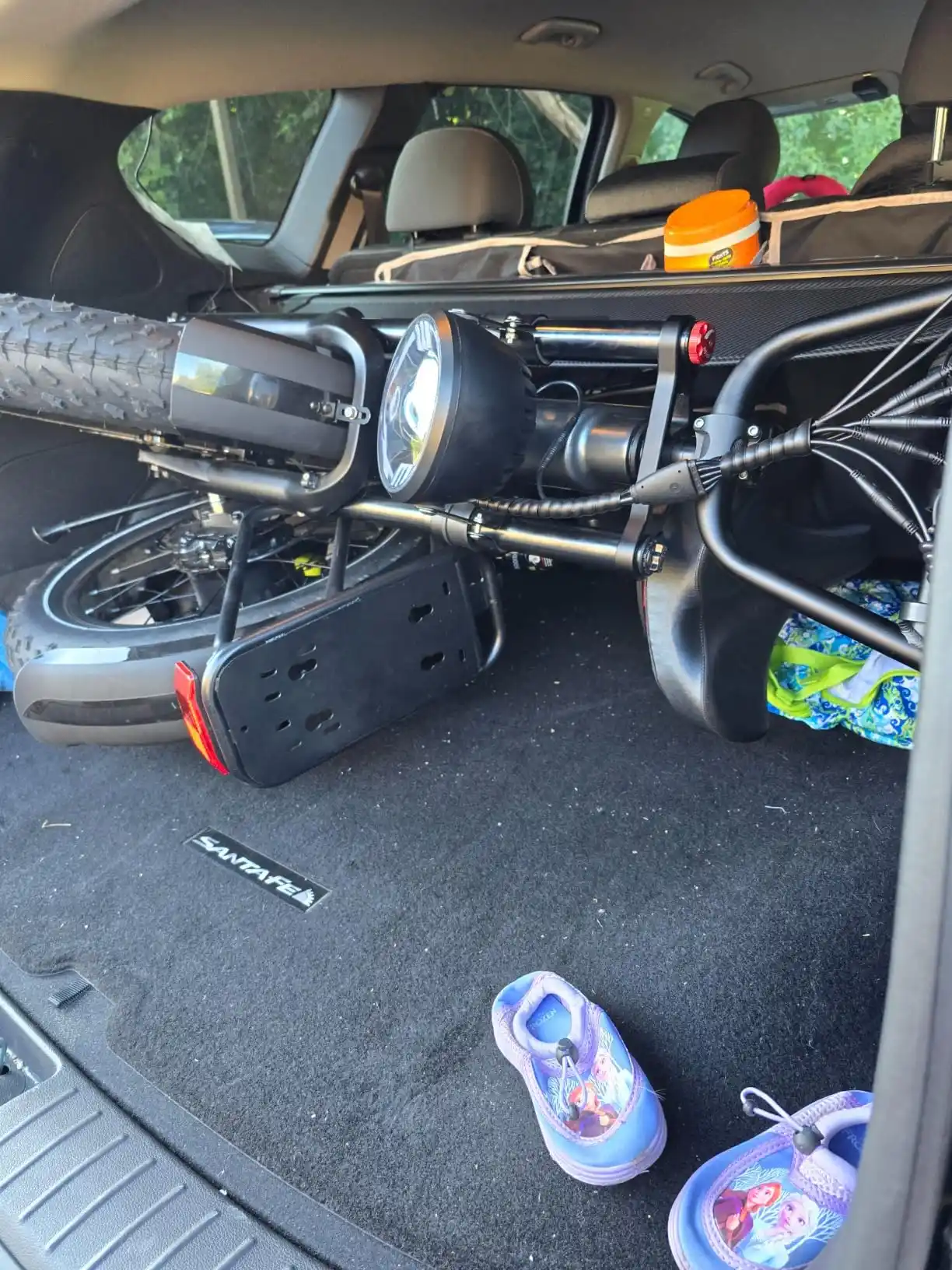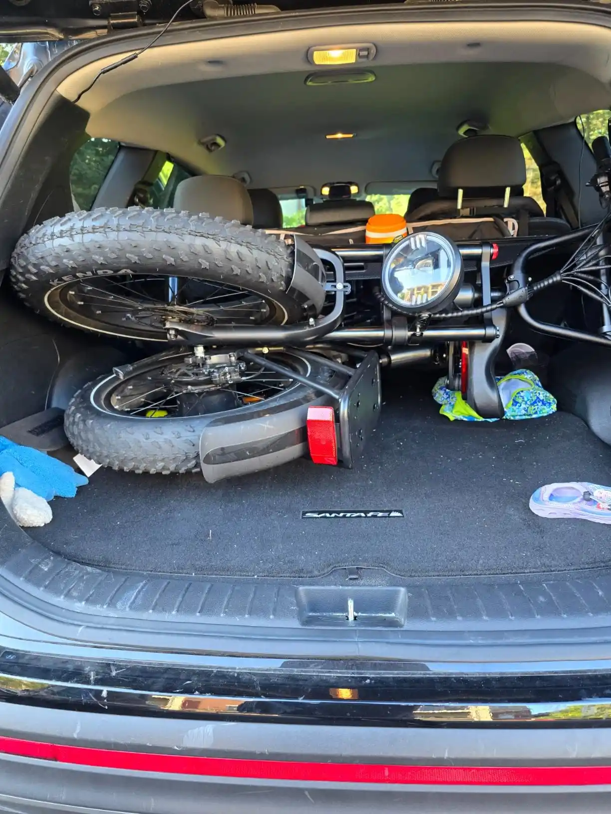 for the actual bike, it runs great and looks amazing! Much bigger than I had expected, but still fits in my 2025 Santa Fe cargo with some extra space still left. I didn't even have to fold the back seats or anything. Putting the bike together was super easy and I did it alone within 30mins. A little heavy at around 80lbs, but not bad.